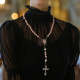 Custom Rosary Beads Cross Necklace Personalized Ceramic Rose Glass Imitation Pearl Necklace with Photo