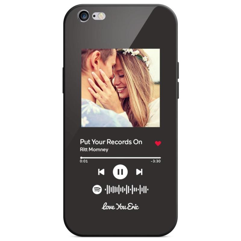 Custom Spotify Code Music iPhone Case with Text Scannable Engraved Custom Music Song Tempered Glass - Black