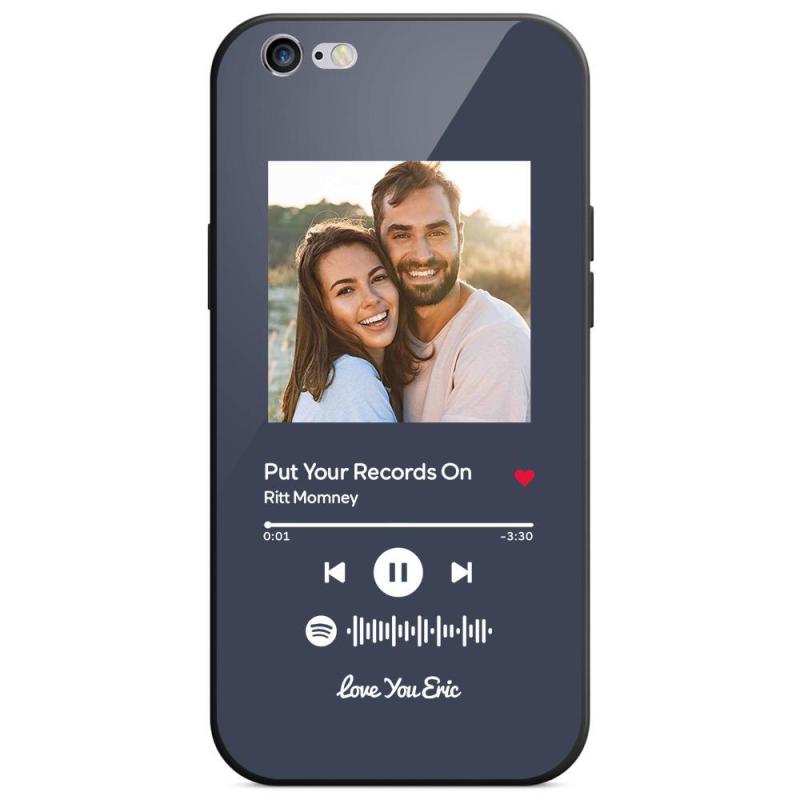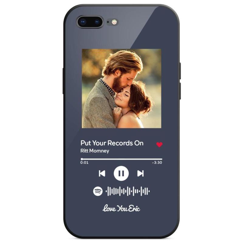 Custom Spotify Code Music iPhone Case with Text Scannable Engraved Custom Music Song Tempered Glass - Dark Blue