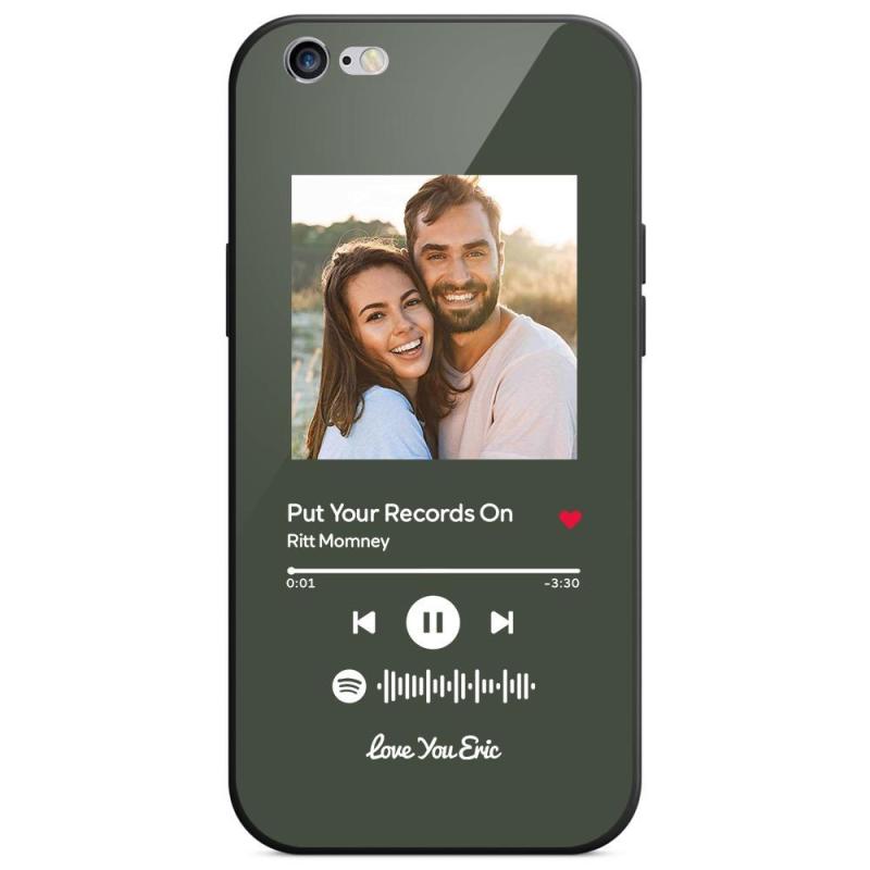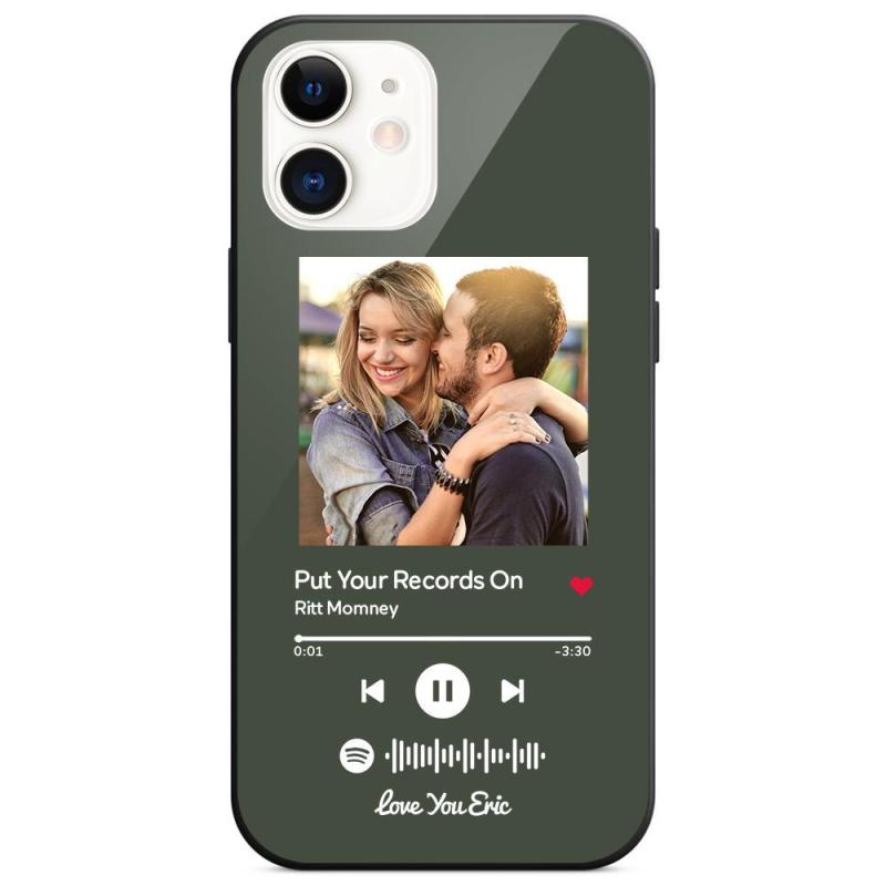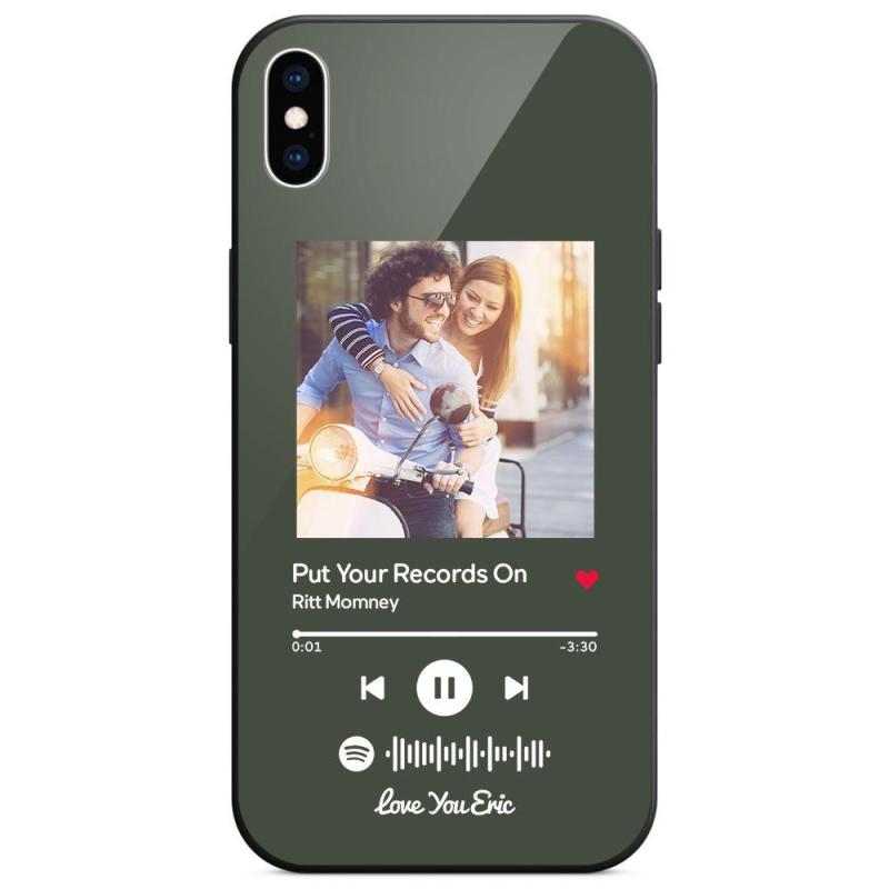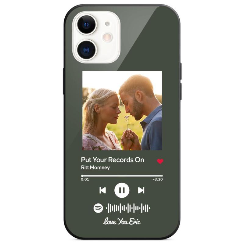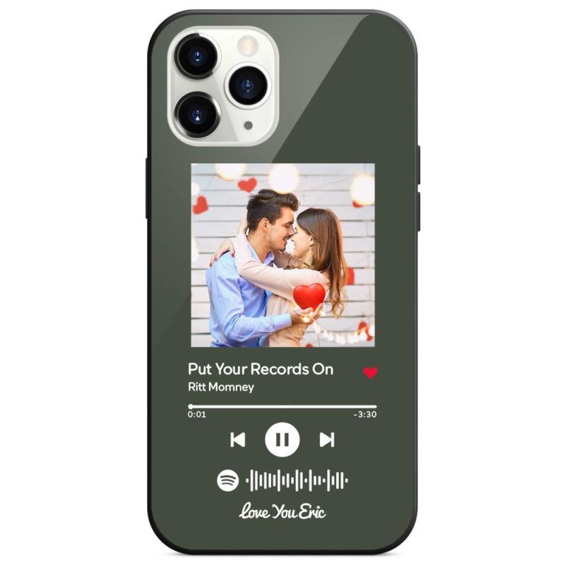 Custom Spotify Code Music iPhone Case with Text Scannable Engraved Custom Music Song Tempered Glass - Dark Green