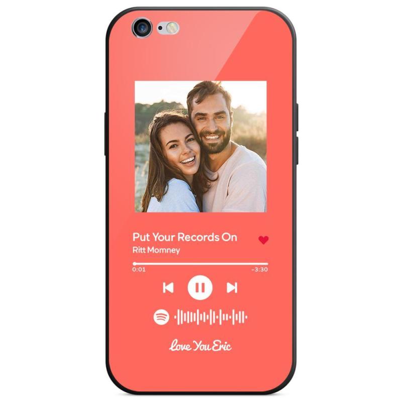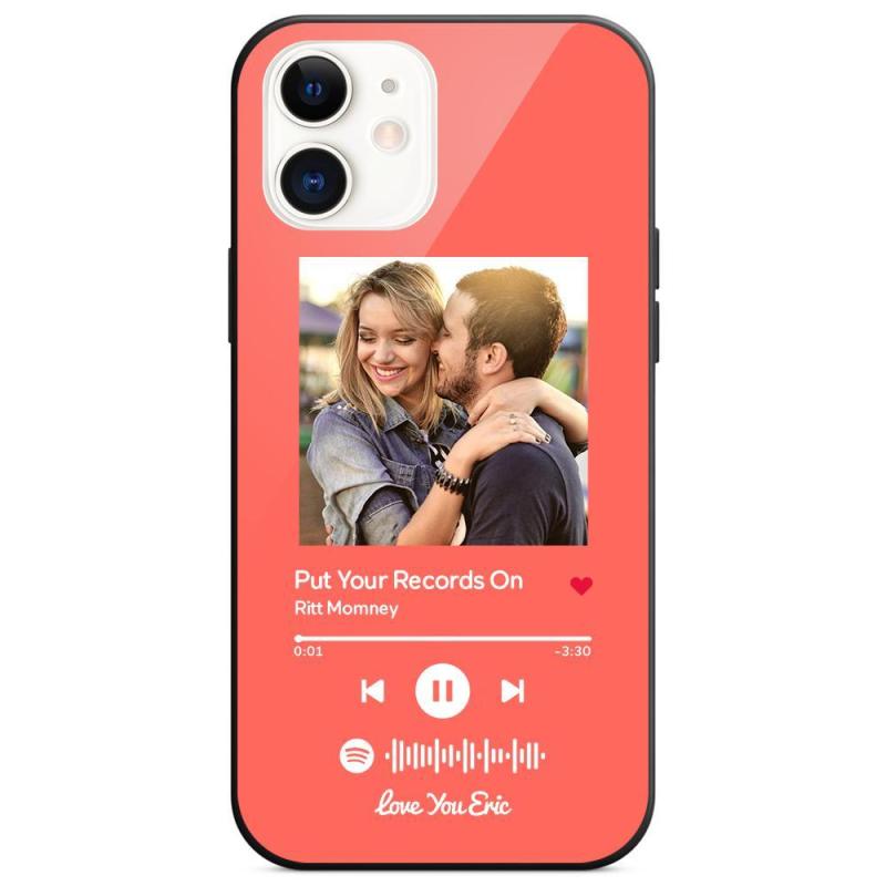 Custom Spotify Code Music iPhone Case with Text Scannable Engraved Custom Music Song Tempered Glass - Light Pink