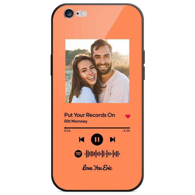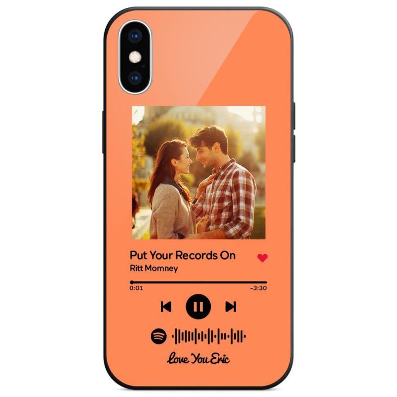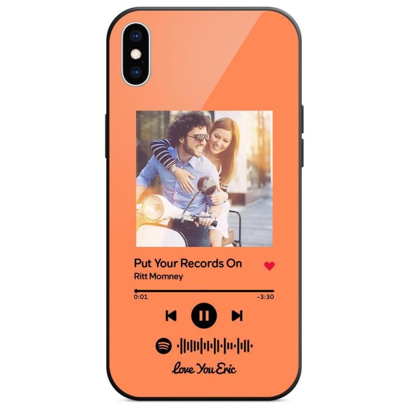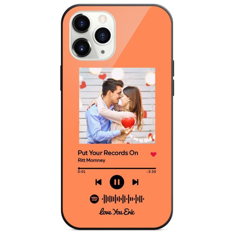 Custom Spotify Code Music iPhone Case with Text Scannable Engraved Custom Music Song Tempered Glass - Orange