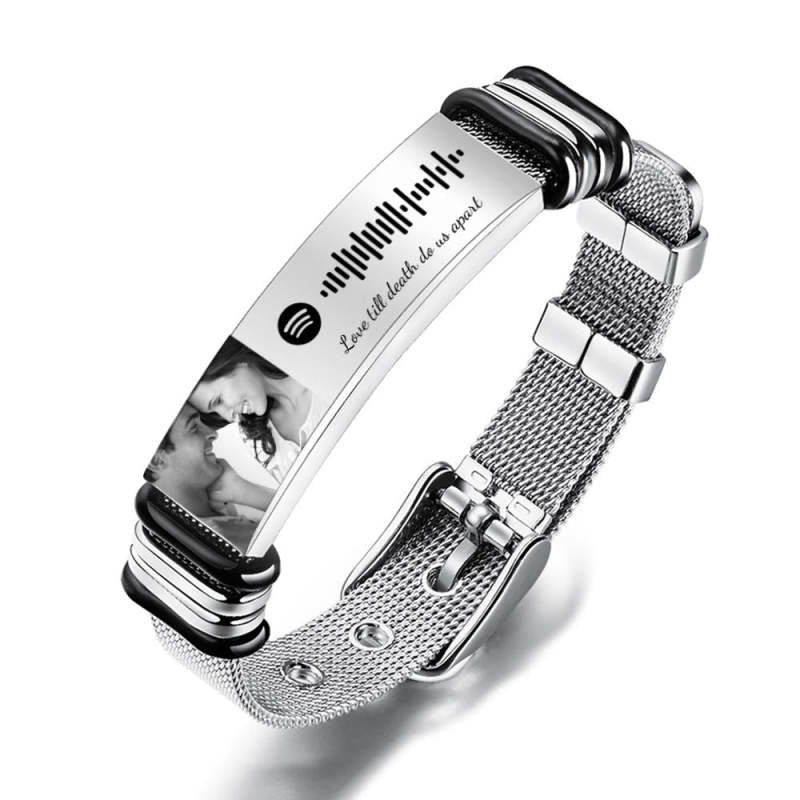 Custom Spotify Music With Personalized Photo And Engraved Stainless Steel Bracelet Best Gifts for Men Gift For Romantic Moments