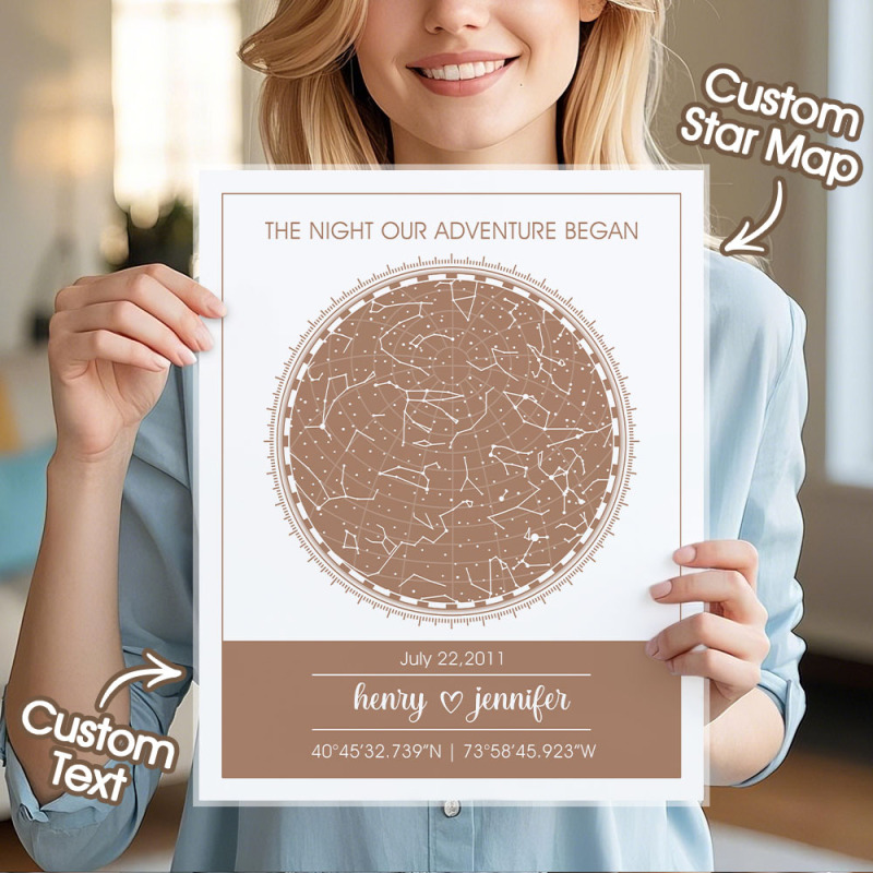 Custom Star Map for Specific Date Art Print Personalized Star Map Night Sky Constellation Anniversary Gifts for Men Unique Gift for Weddings, Girlfriends, Boyfriends, Engagements