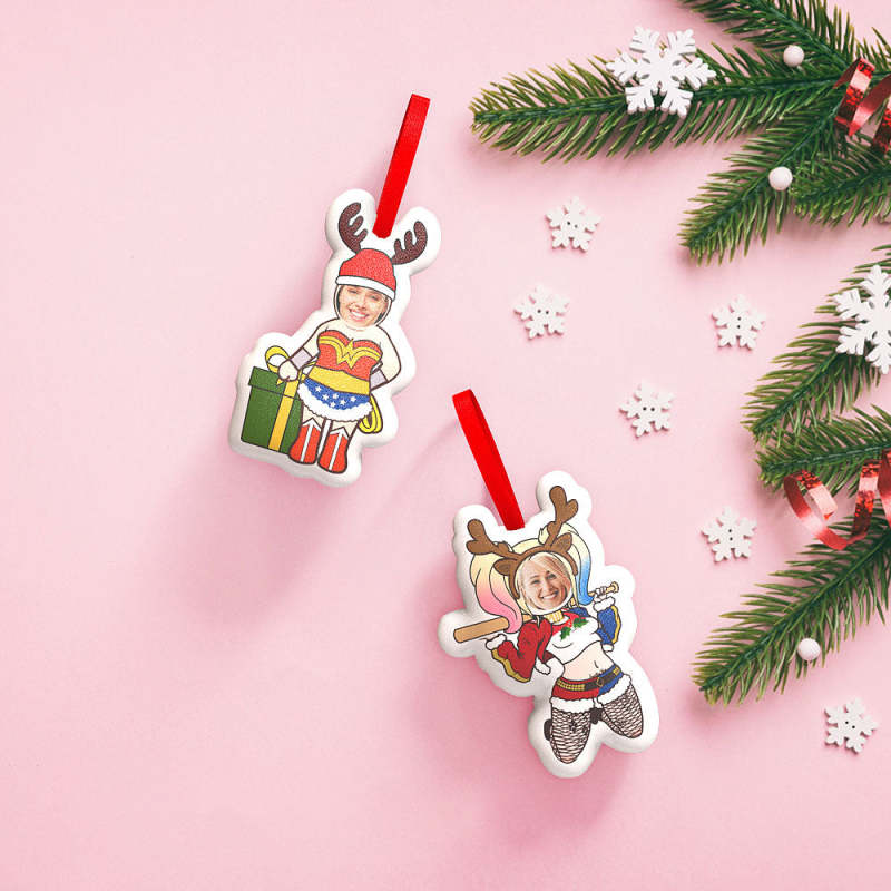 Fun Christmas tree hangings will bring you more than a few laughs. Our customised Human Face Antler Santa and Harley Quinn Plush Hanging has strings so you can easily hang our Christmas Tree Hanging on a Christmas tree, living room or office to create a Christmas atmosphere.