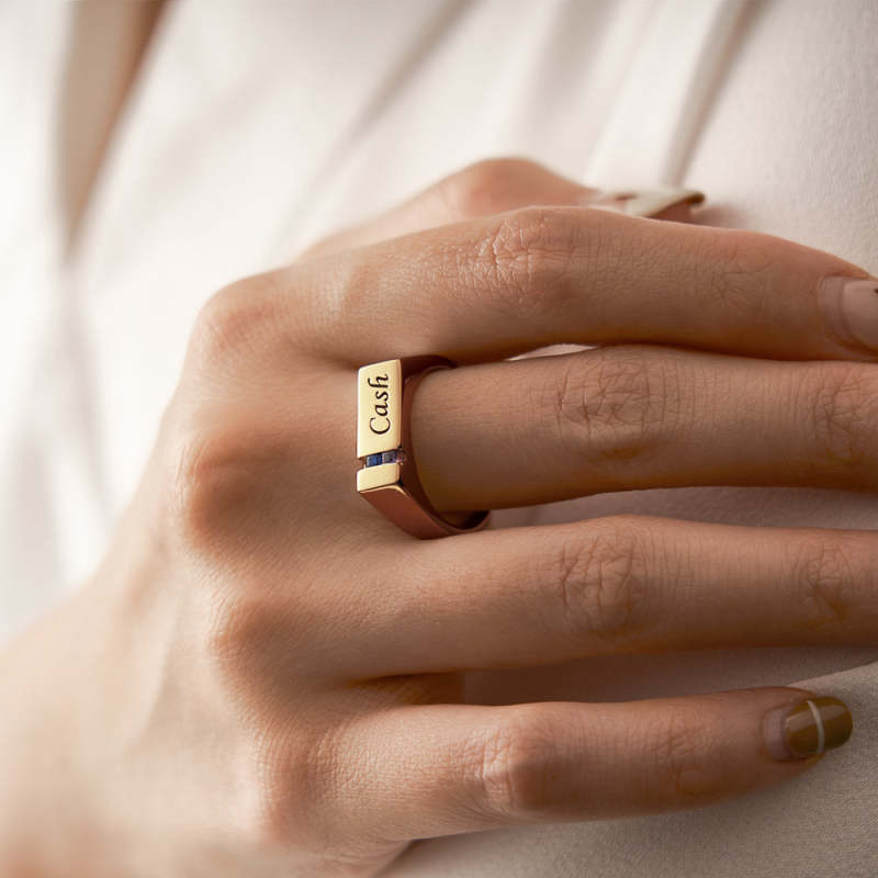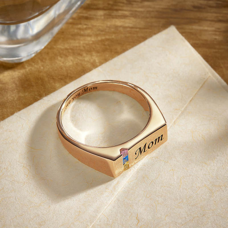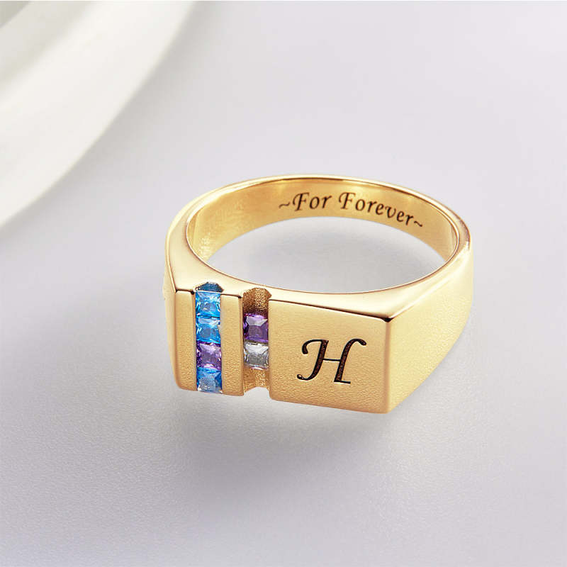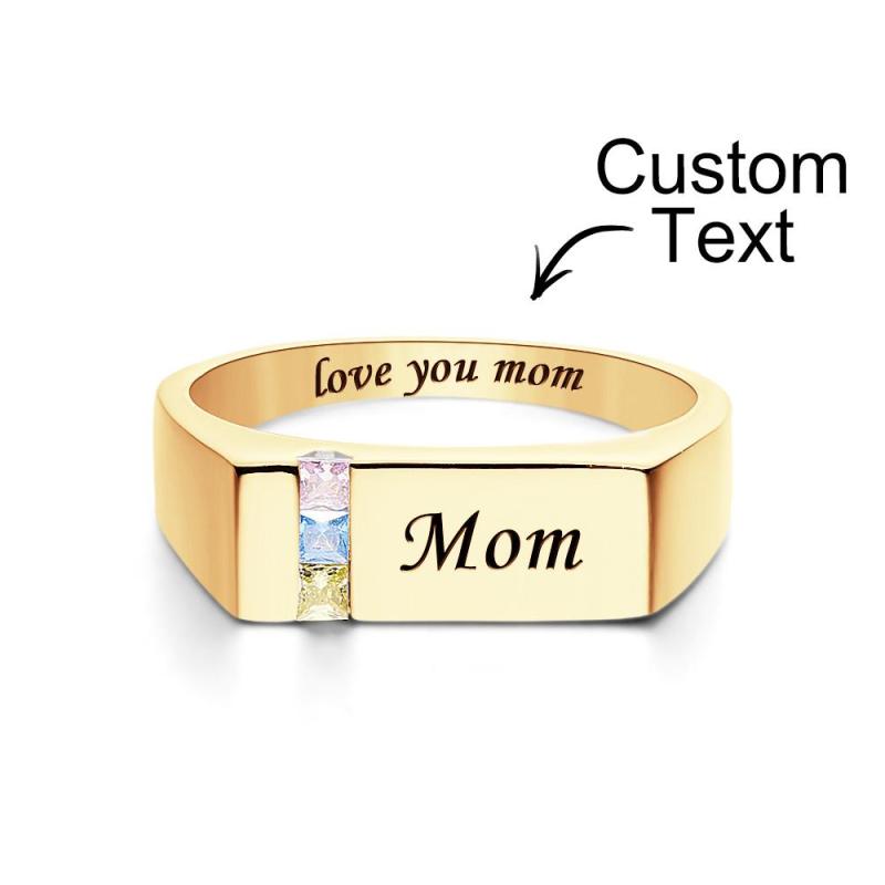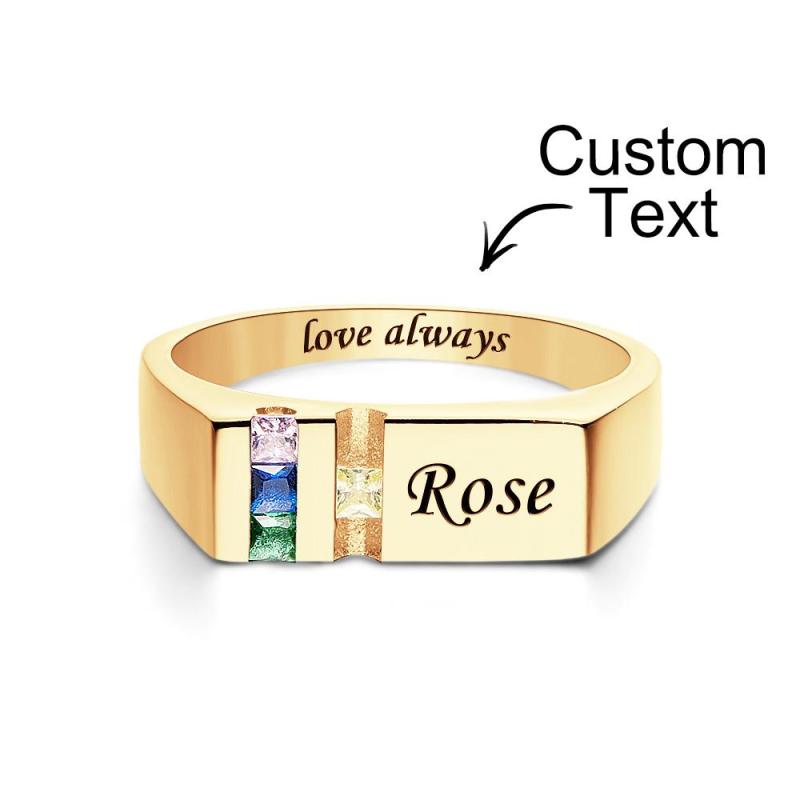Custom Text Birthstone Ring 18k Gold Plated Personalized Family Ring Gift For Her