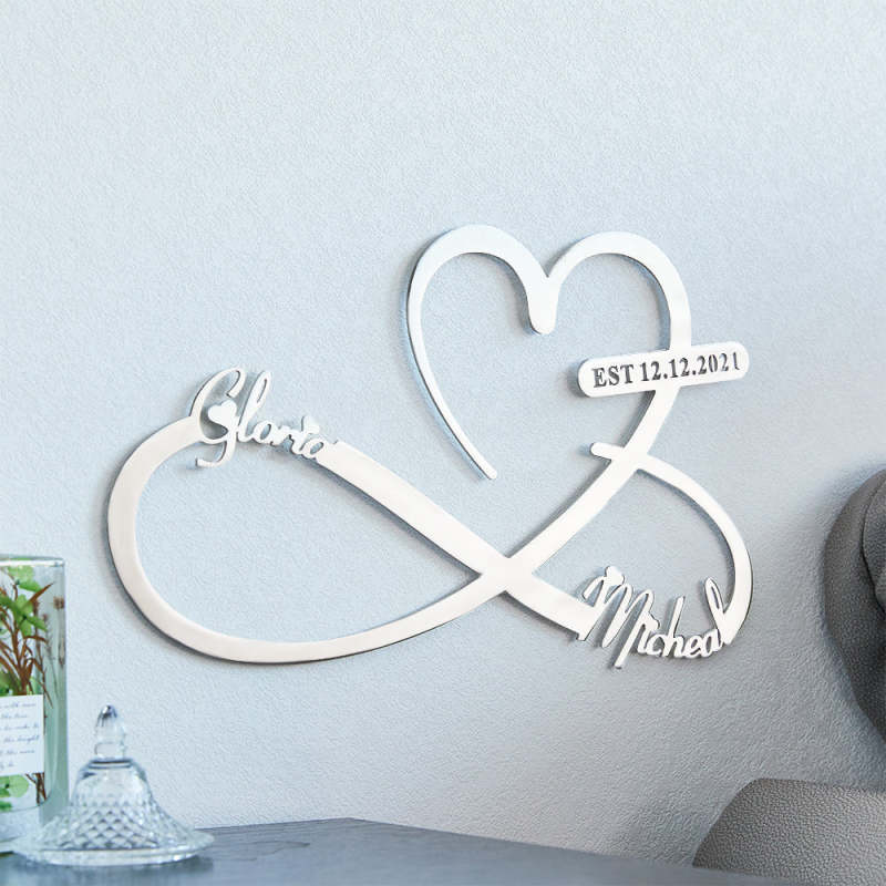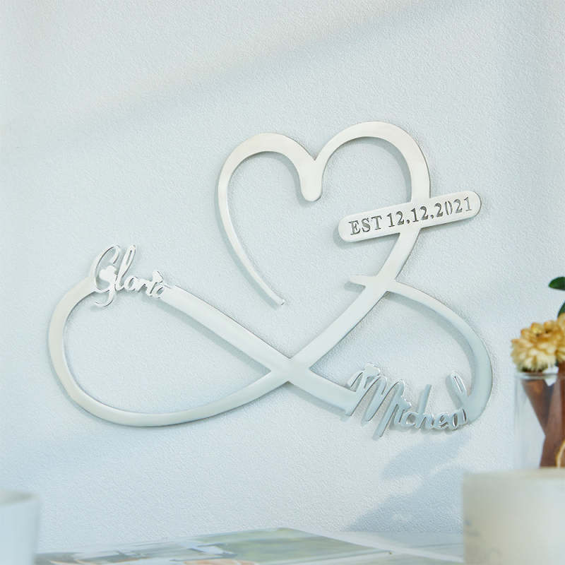 Metal large customized names and date, best wall decorations for living room, bedroom, or living room.Best Christmas gift or New Year wall decoration.Easy mounting just with nails. Nail is not included . Unique design for home kitchen, living room, in office, in the bar, in hotel, bedroom even in your bathroom.