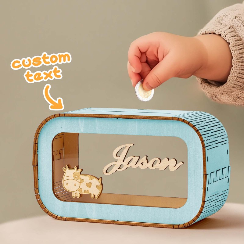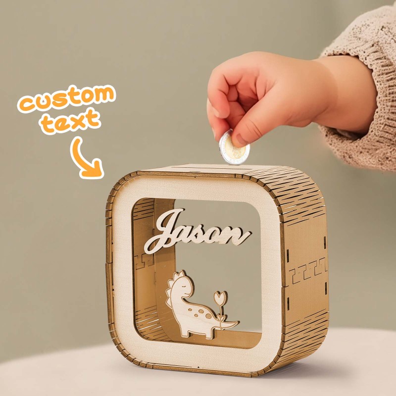 This wooden piggy bank with name & animals is a great gift for your kids. It's a durable, pratical & educational toy.