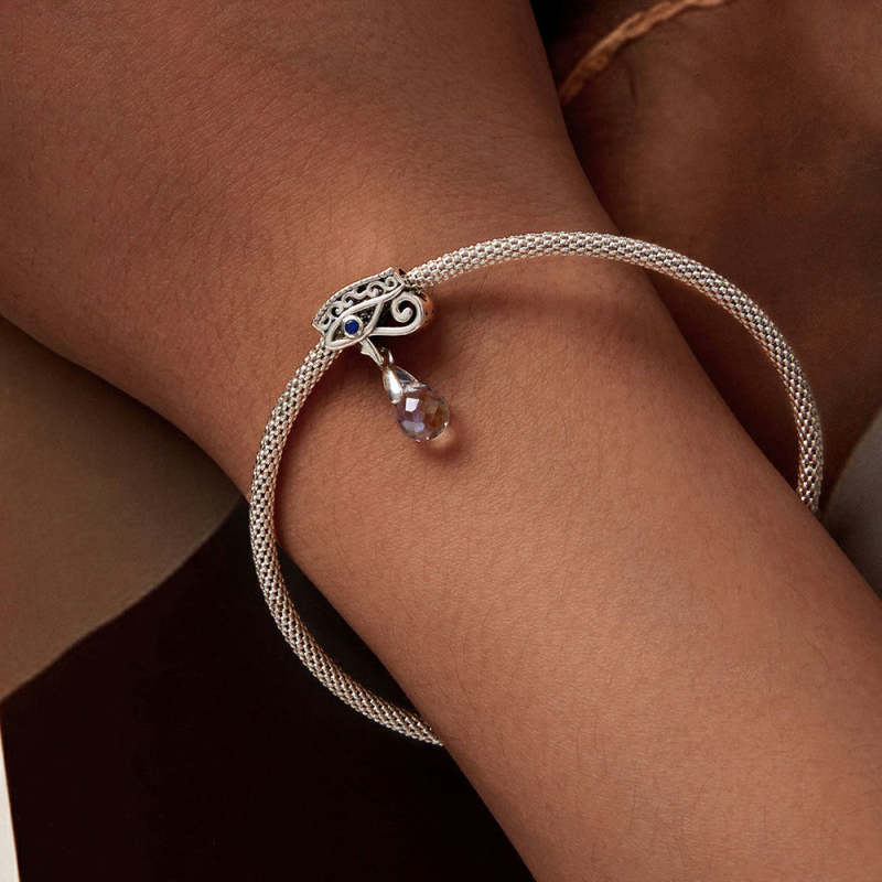 Devil Eye with Water Drop Dangle Charm Silver