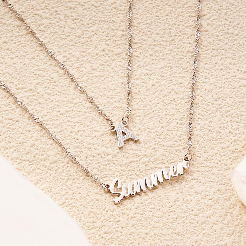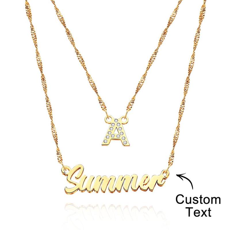 Double Chain Name Necklace Layered Necklace Custom Gold Initial Necklace, Personalized Letter Name Necklace Gift for Her