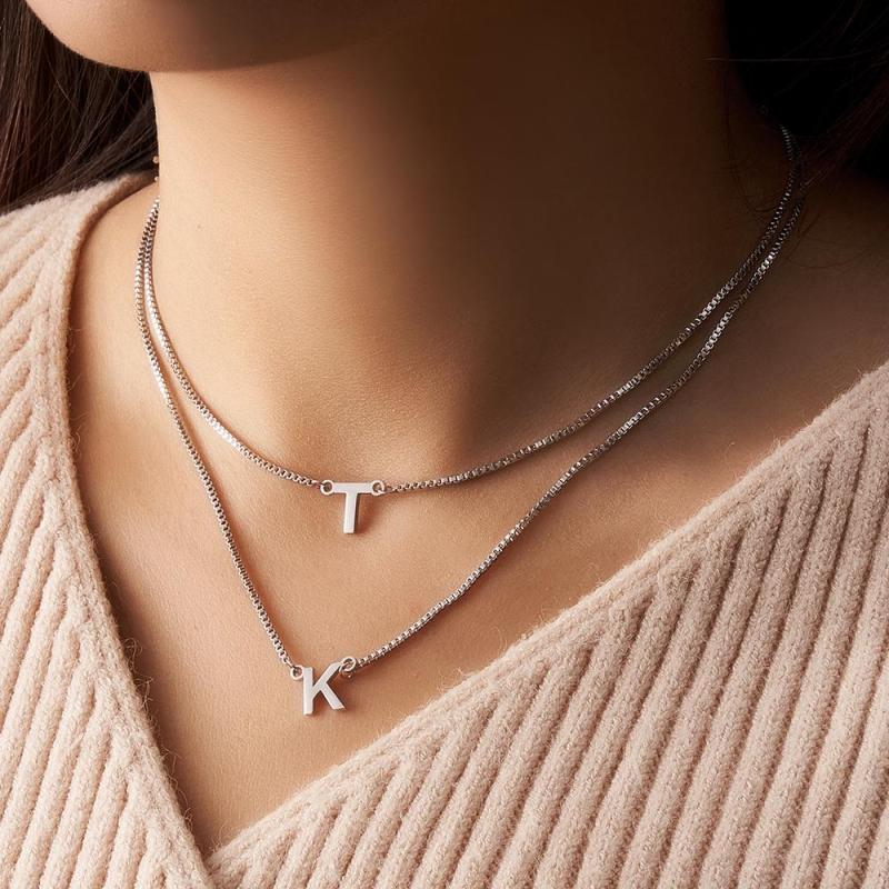 Double Chain Name Necklace Personalized Letter Necklace Initial Gift Necklace Gift For Women