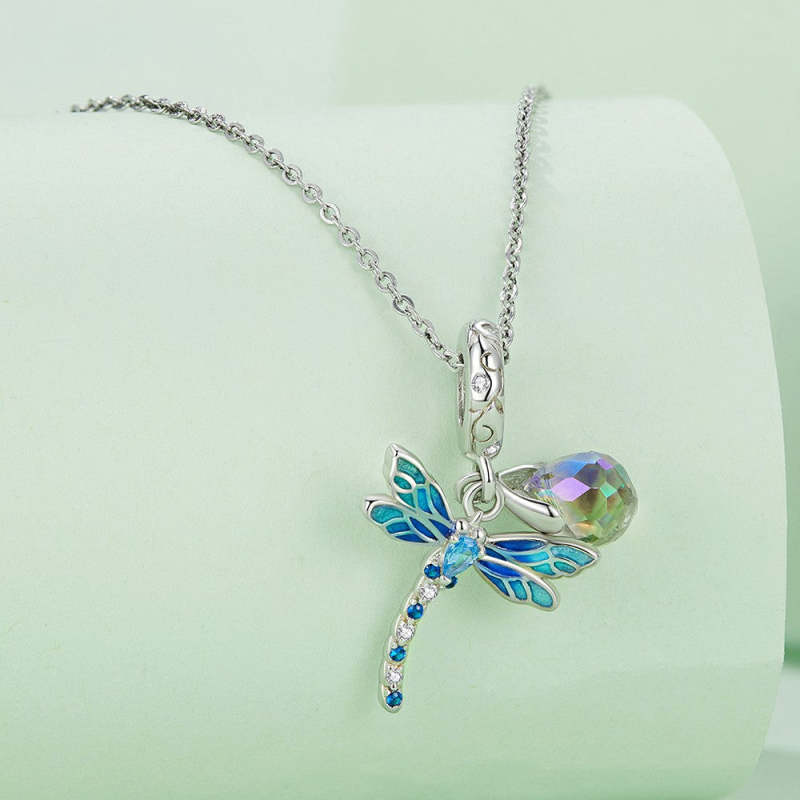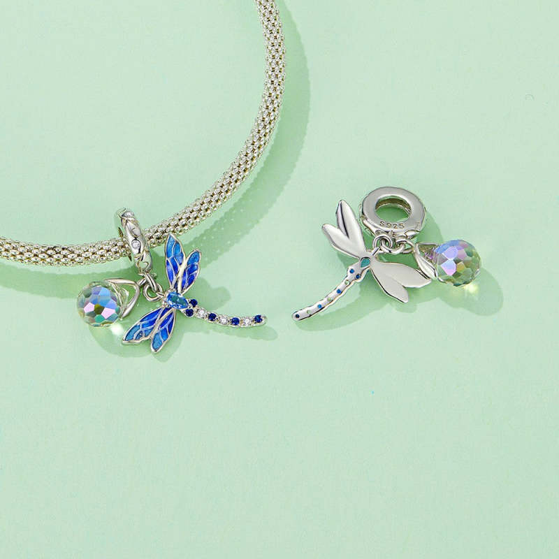 Dragonfly and Water Drop Dangle Charm Silver