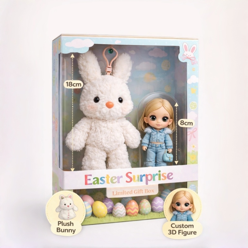 Easter Gift for Kids – Custom 3D Baby Figure with Plush Bunny Personalized