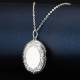 Embossed Oval Photo Locket Necklace With Engraving Platinum Plated