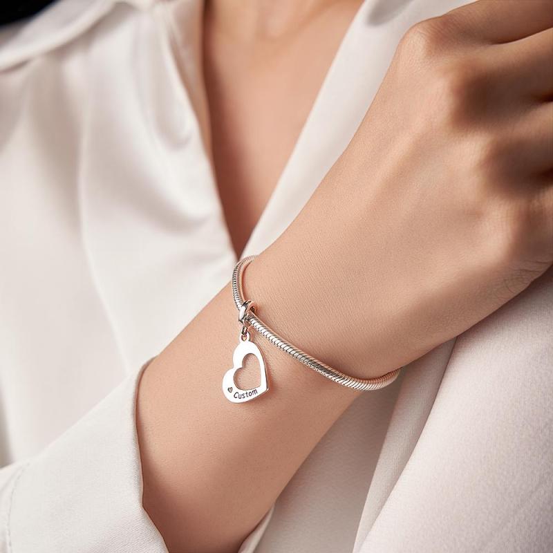 Engravable Charm Set Hollow Out Heart Pendant Mother's Day Gifts