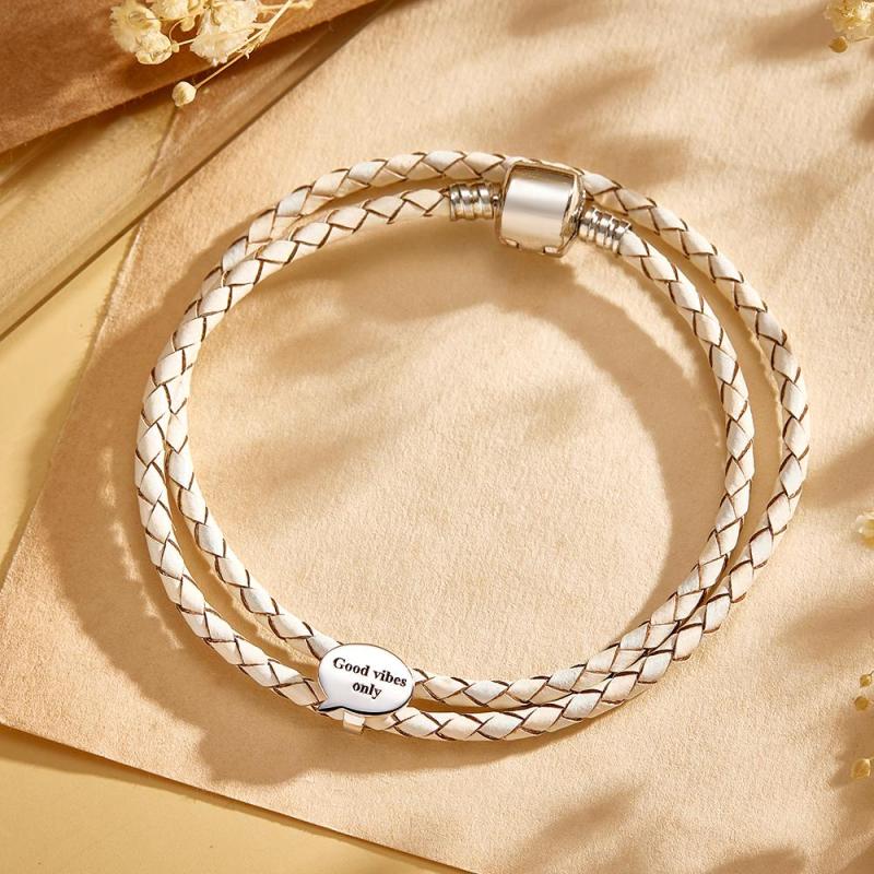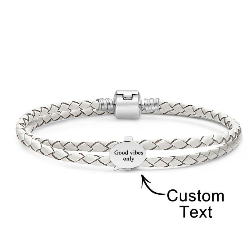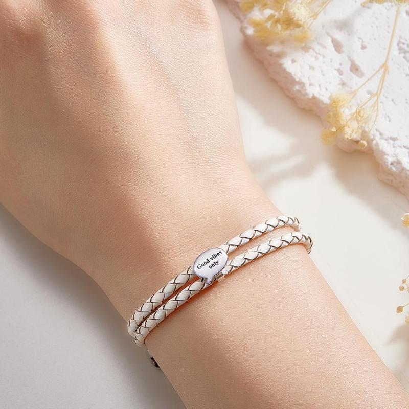 Stack your love together with our leather bracelet. Custom engraved bracelet, choose words or sentences with special significance for you to print on the bracelet to form your exclusive bracelet. Make for very thoughtful and appreciated gifts for friends and family. Give them to someone celebrating a birthday, graduation, baby shower, or anniversary.