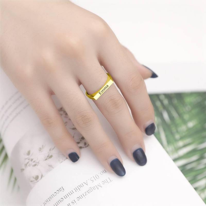 If the design of double promise ring is not your favorite simple and tinny style. So this promise ring must be your best choice. The engravable design can not only be engraved on your love declaration, but can also be engraved on your lover's name, and the world will declare that he is yours. This ring design is original, style fashionable, deserve to own as lifetime treasure. Soufeel has a ton of customized jewelry options that are reasonably priced and make for great gifts for all sorts of occasions like birthdays, holidays, anniversaries,Christmas Gift, mother's gift, best friend's gift, lover's gift. Engraved Bar Ring, Name Ring 14K Gold Plated Elegant Gift - Silver.