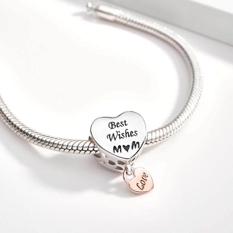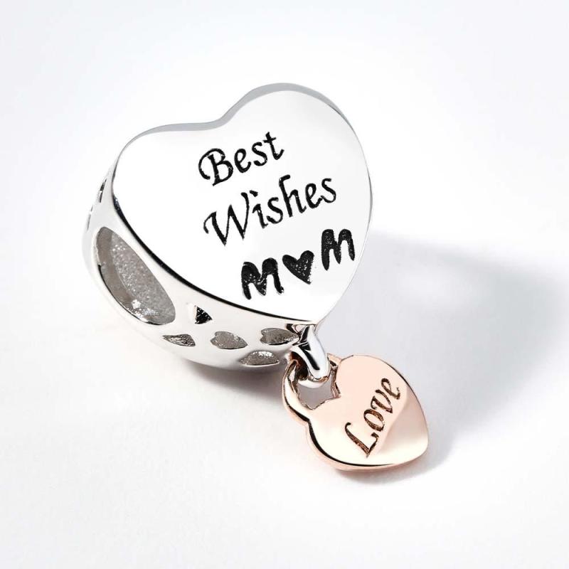 Engraved Charm Heart Shaped Mom Beads Charms for Mother's Day Gifts