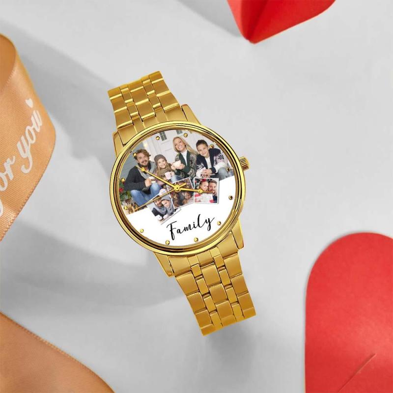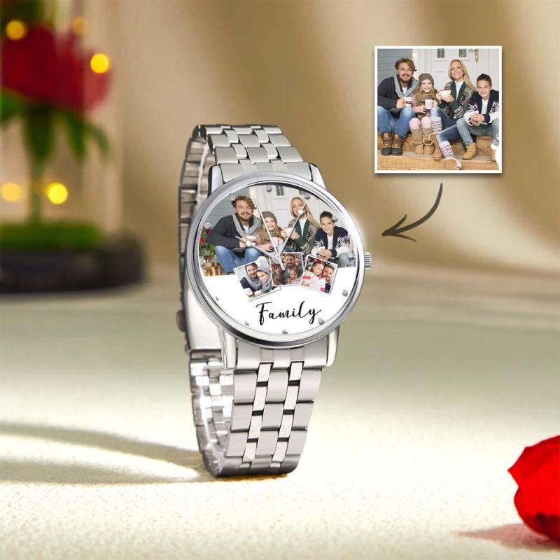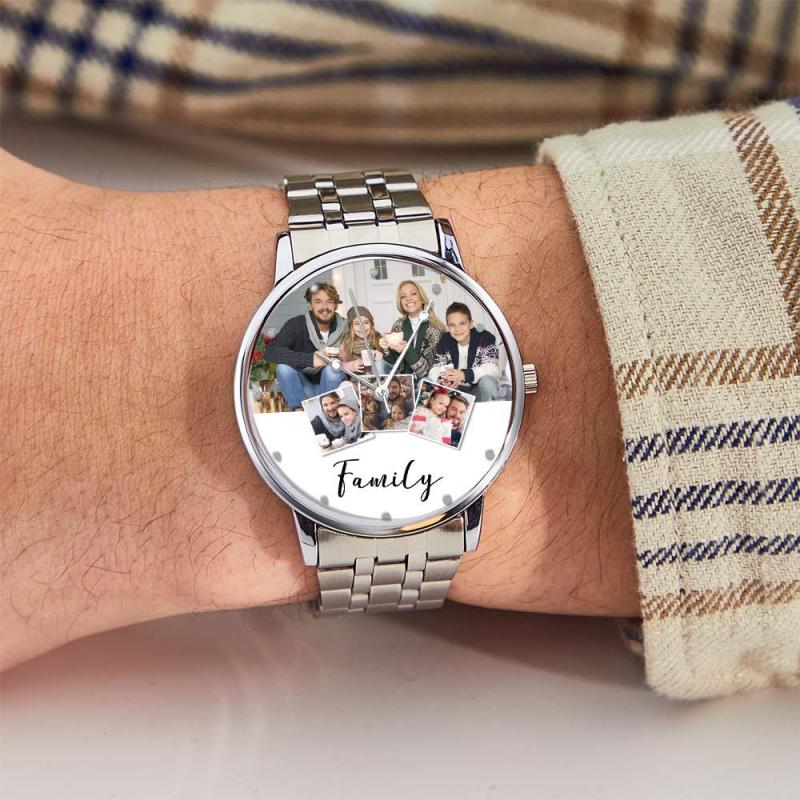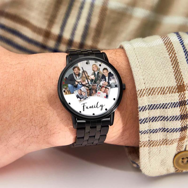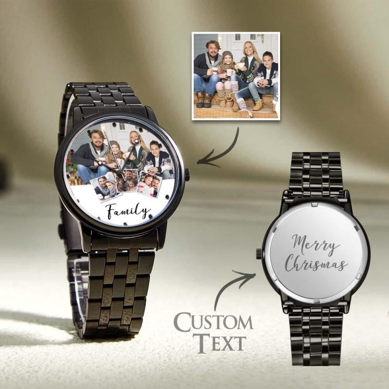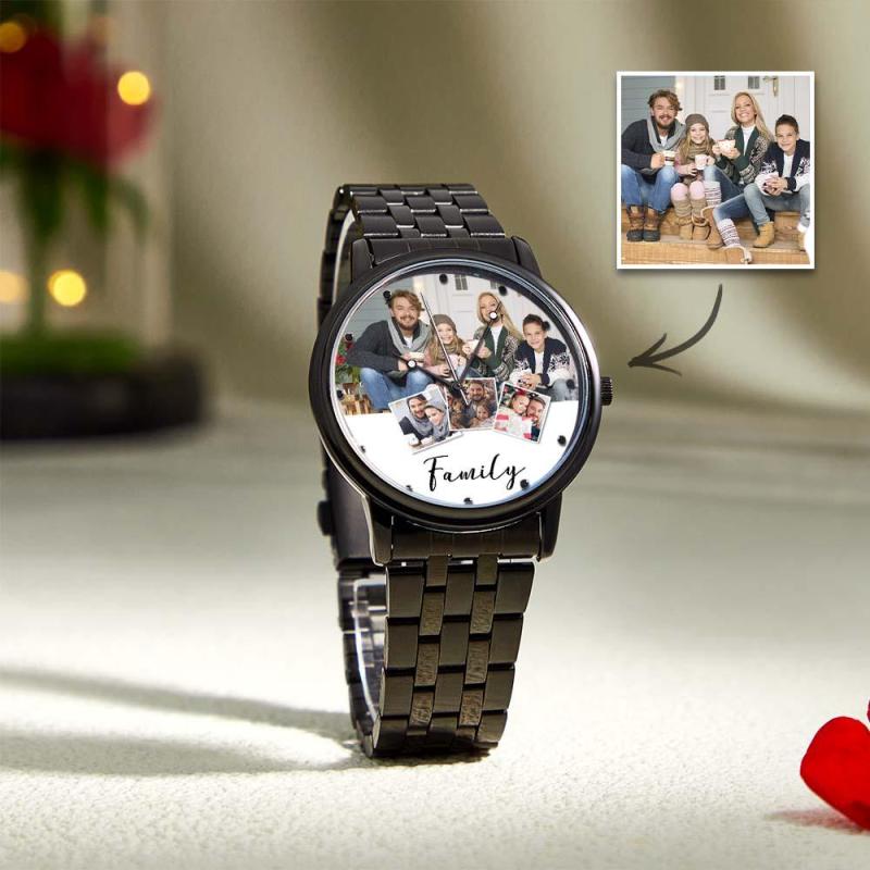 Personalized Engraved Men's Black Alloy Bracelet Photo Watch Christmas Gifts For My Family