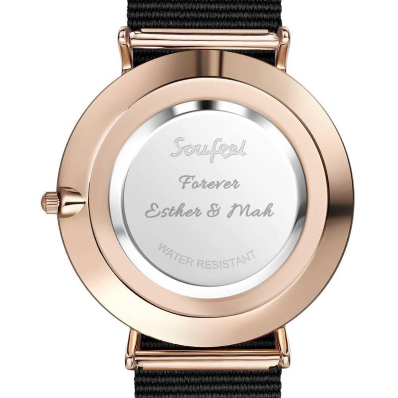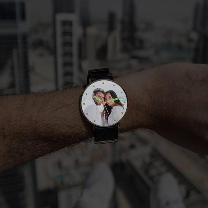 Surprise your loved one with a custom photo watch with Luminous Pointer which is purely custom made to fit any personality. The image of design is directly printed onto the inside of watch surface. A custom photo watch always makes a great gift and will never go out of style. We can personalise the reverse of the watch with a message, Carefully engraved, it forever remembers your message.This watch is our signature masterpiece, the perfect fusion of minimalism and sophistication. Dressed up or down, it's sure to punctuate the look and will make a perfect gift for your loved ones, or even a treat for yourself! Soufeel has a ton of customized jewelry options that are reasonably priced and make for great gifts for all sorts of occasions like birthdays, holidays, anniversaries,mother's birthday gift. Engraved Watch, Photo Watch with Luminous Pointer Black Strap - Men's.