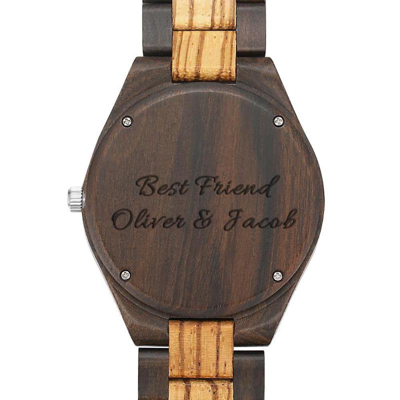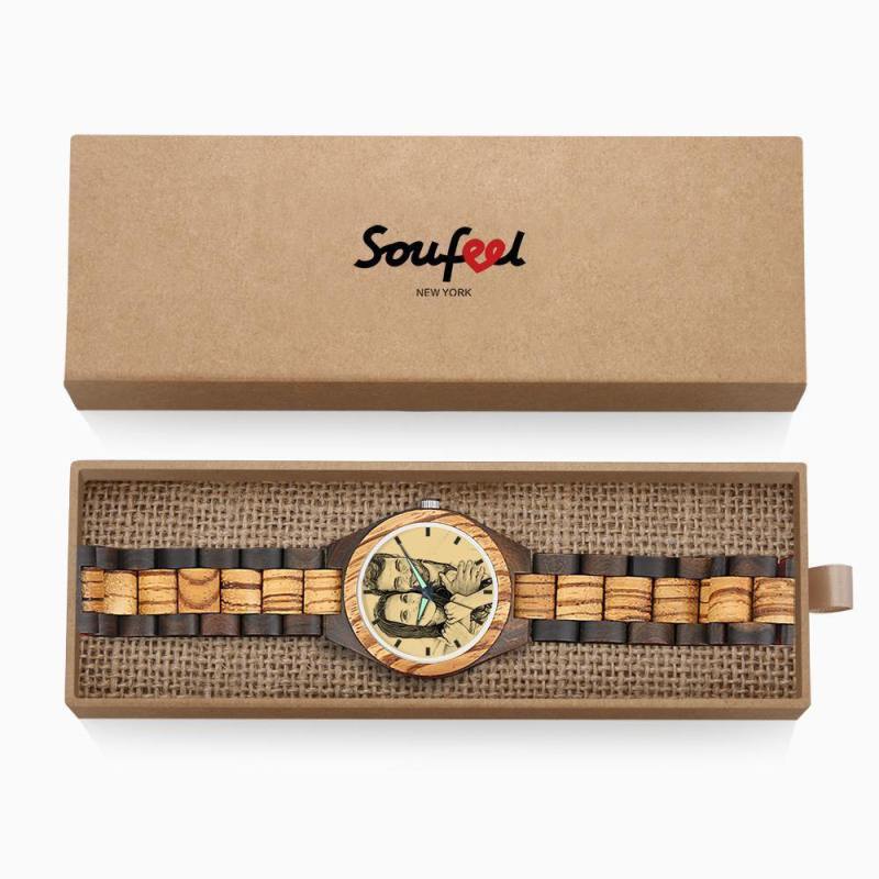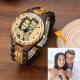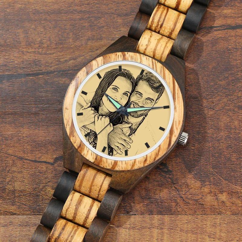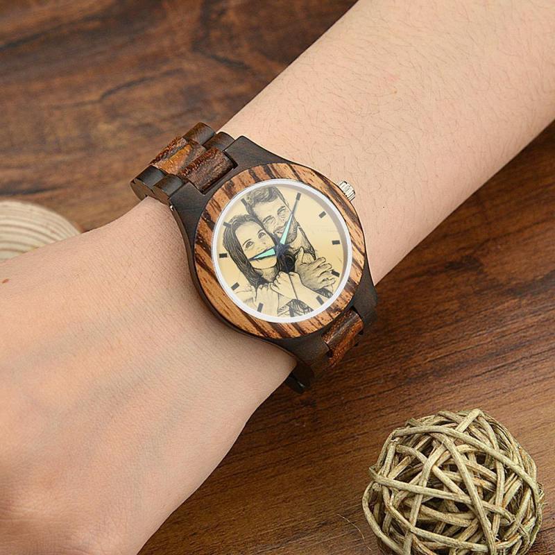 Engraved Wooden Photo Watch Wooden Strap 38mm Sketch Effect - Women's