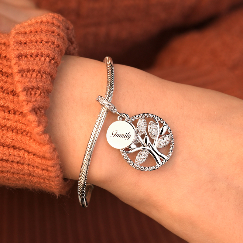 Engraving Charm Family Tree Charm Round Pendant Charm For Her