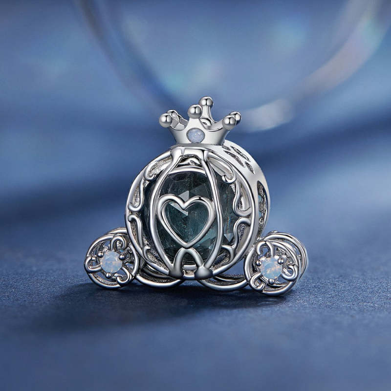Exquisite Pumpkin Cart Charm Silver