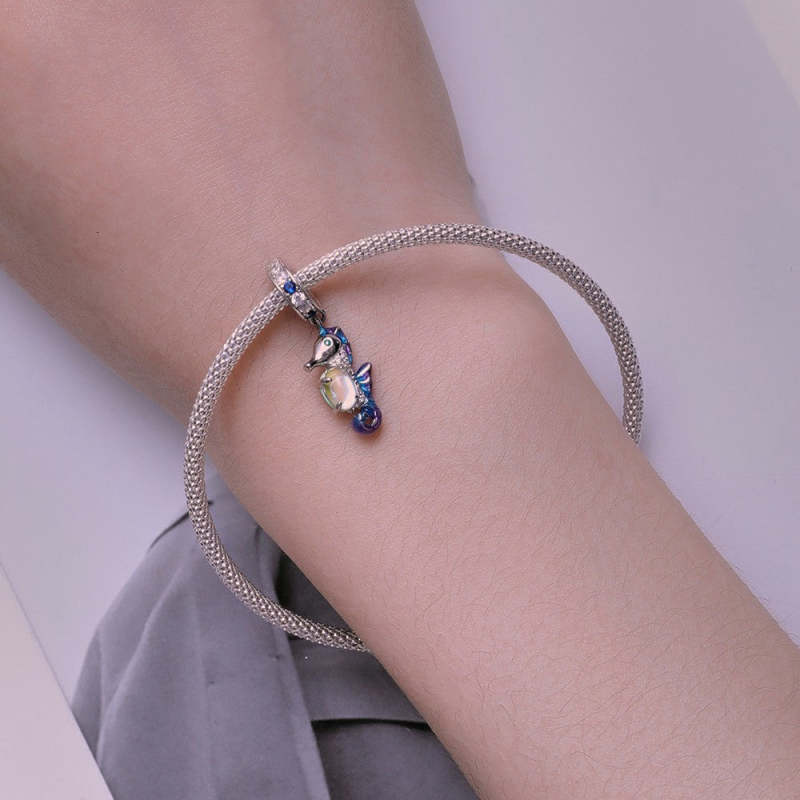 Exquisite Seahorse Dangle Charm Silver