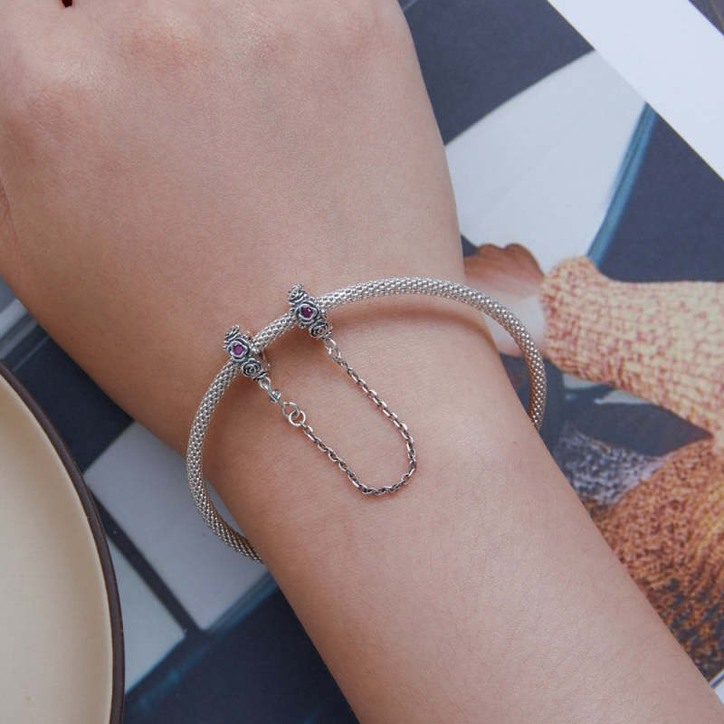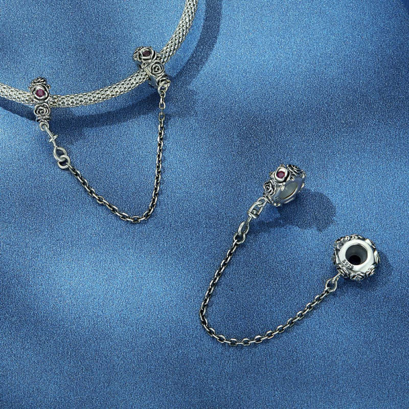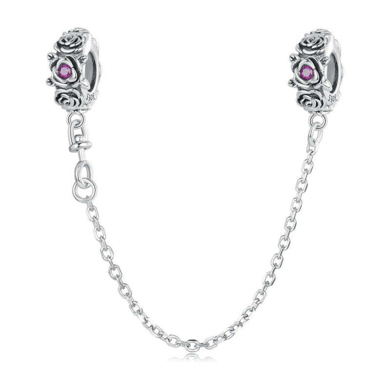 Fashion Rose Safety Charm Chain Silver