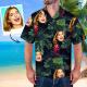 Father's Day Gift Custom Shirt Men's Full Print Hawaiian Shirt Green Leaf Red Flower