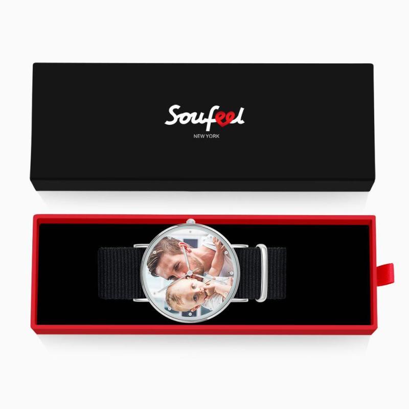 Surprise your loved one with a custom photo watch which is purely custom made to fit any personality. The image of design is directly printed onto the inside of watch surface. A custom photo watch always makes a great gift and will never go out of style. We can personalise the reverse of the watch with a message, Carefully engraved, it forever remembers your message.This watch is our signature masterpiece, the perfect fusion of minimalism and sophistication. Dressed up or down, it's sure to punctuate the look and will make a perfect gift for your loved ones, or even a treat for yourself! Soufeel has a ton of customized jewelry options that are reasonably priced and make for great gifts for all sorts of occasions like birthdays, holidays, anniversaries,Father's day. Father's Gift - Personalized Engraved Watch, Custom Your Own Photo Watch with Black Strap.