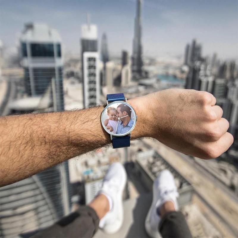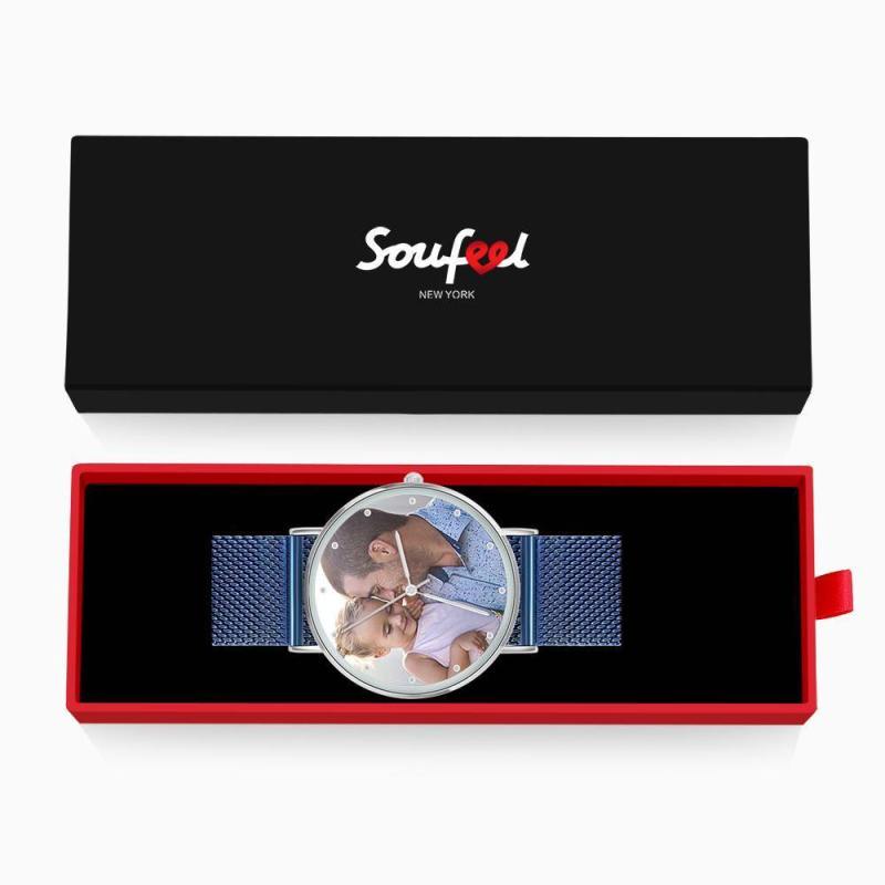 Surprise your loved one with a custom photo watch which is purely custom made to fit any personality. The image of design is directly printed onto the inside of watch surface. A custom photo watch always makes a great gift and will never go out of style. We can personalise the reverse of the watch with a message, Carefully engraved, it forever remembers your message.This watch is our signature masterpiece, the perfect fusion of minimalism and sophistication. Dressed up or down, it's sure to punctuate the look and will make a perfect gift for your loved ones, or even a treat for yourself! Soufeel has a ton of customized jewelry options that are reasonably priced and make for great gifts for all sorts of occasions like birthdays, holidays, anniversaries,Father's day. Father's Gift - Personalized Engraved Watch, Custom Your Own Photo Watch with Blue Strap.