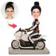 Female Motorcyclist Custom Bobblehead With Engraved Text