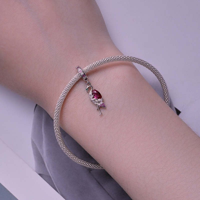 Flamingo Dangle Charm Silver