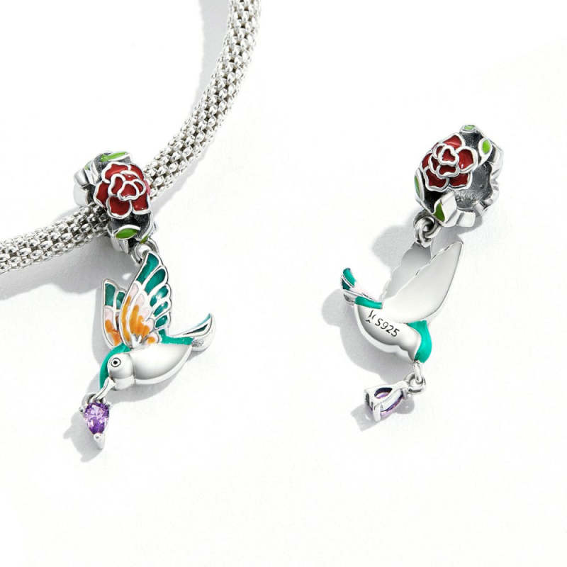 Flower and Bird Dangle Charm Silver