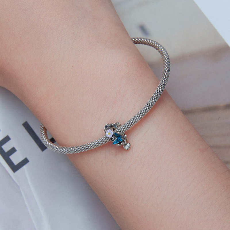 Flower Heart Enamel Charm Silver