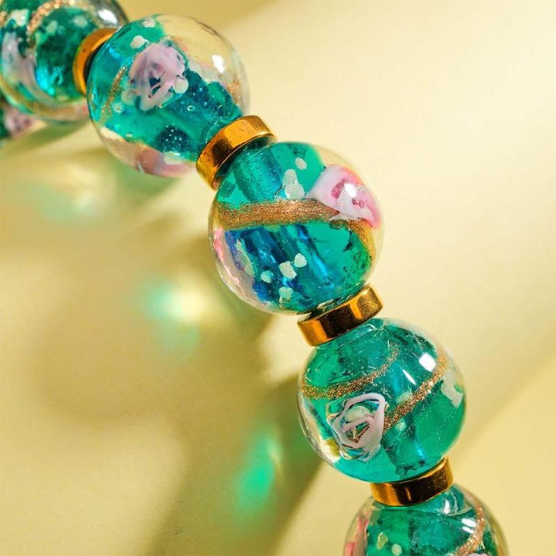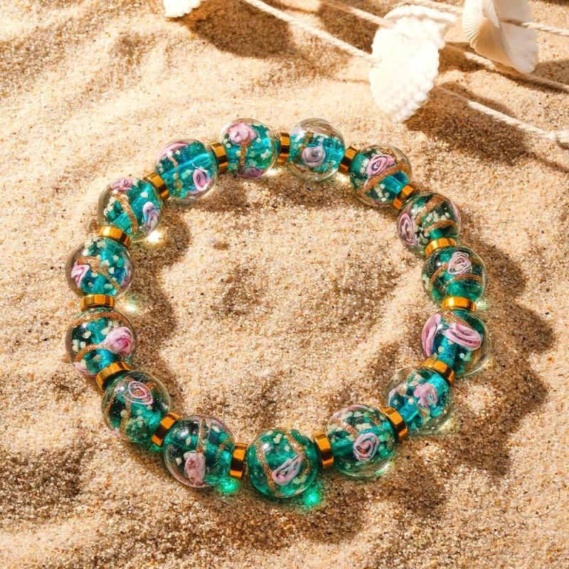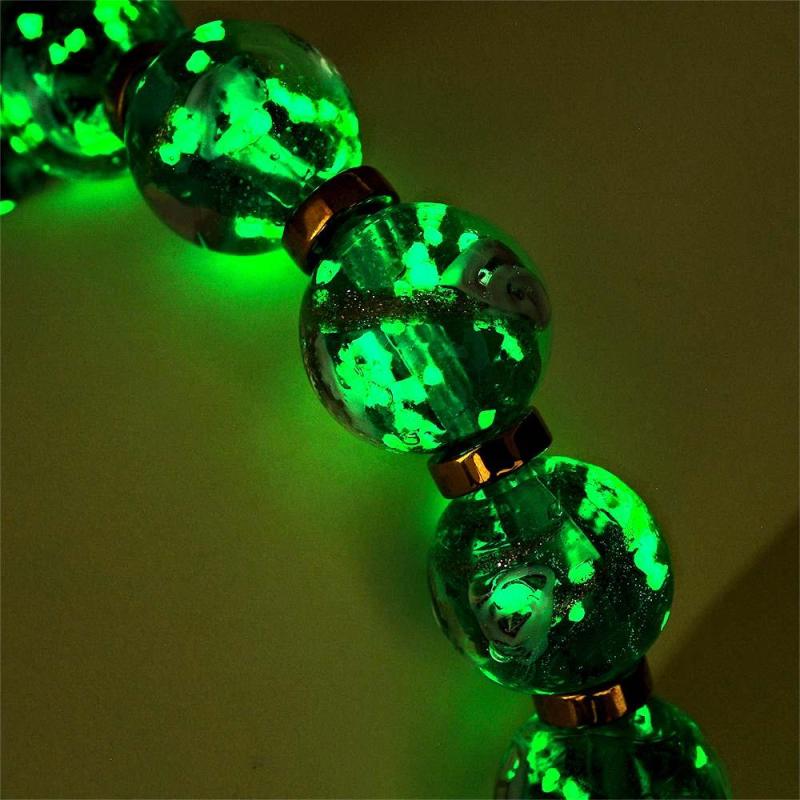 Flowery Blue Firefly Glass Stretch Beaded Bracelet Glow in the Dark Luminous Bracelet