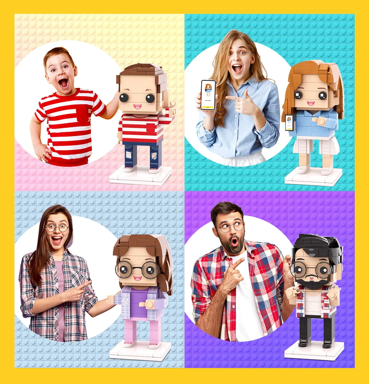 Full Body Customizable 4 People Custom Brick Figures Universal Interlocking Plastic Toy Christmas Gift For Family Perfect For Christmas Gift Exchange Themes