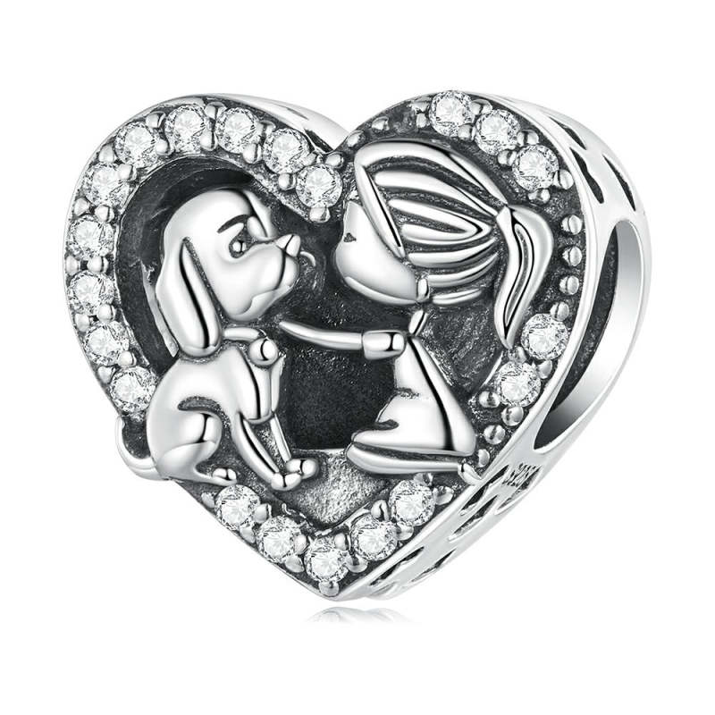 Girl and Pet Charm Silver