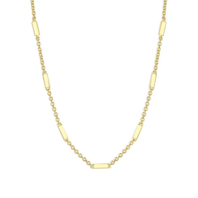 This necklace is the perfect base for layered looks. Versatile and timeless, this necklace can be set with stones, diamonds, or layered with other chain styles.