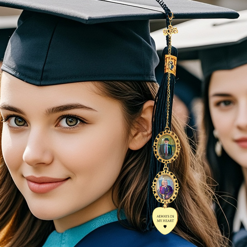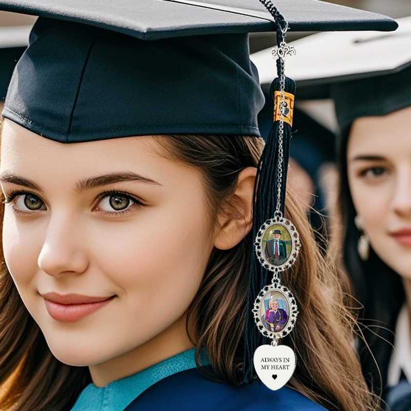Create a heartfelt keepsake with our Custom Graduation Photo Charm. This memorial tassel and cap charm features your favorite graduation photo, making it a meaningful graduation gift or memento. Perfect for celebrating milestones and cherishing the memories of graduation.