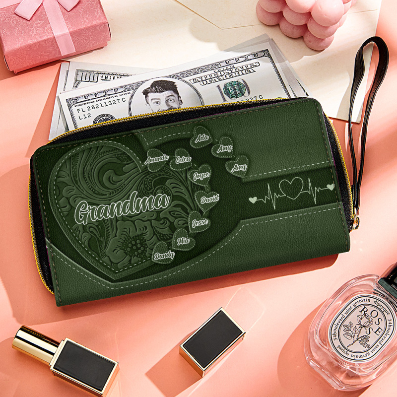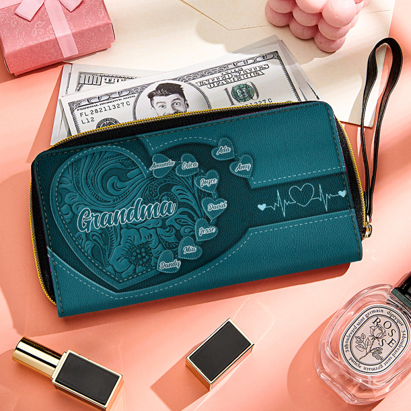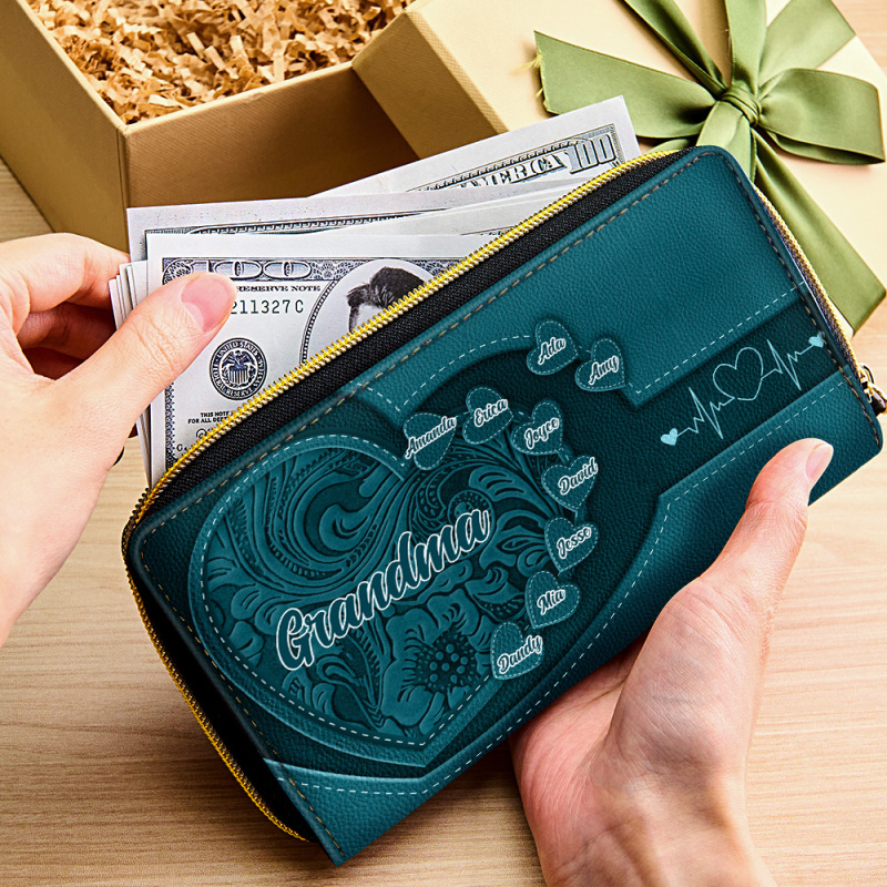 Creating lasting memories for your grandma or mom with our Personalized Leather Long Wallet! Customize this elegant wallet with Grandma's name and her favorite color to create a truly unique and meaningful gift. Crafted with exquisite leather and meticulous attention to detail, this long wallet is more than just an accessory—it's a symbol of love and appreciation that will resonate deeply with Grandma. Whether it's for Christmas, her birthday, Valentine's Day, Mother's Day, or an anniversary, this personalized touch adds an extra layer of sentimentality that will warm her heart. With its spacious compartments and durable construction, this wallet is as practical as it is beautiful. It's perfect for keeping cards, cash, and mementos close at hand, making it a cherished companion for Grandma's everyday adventures.