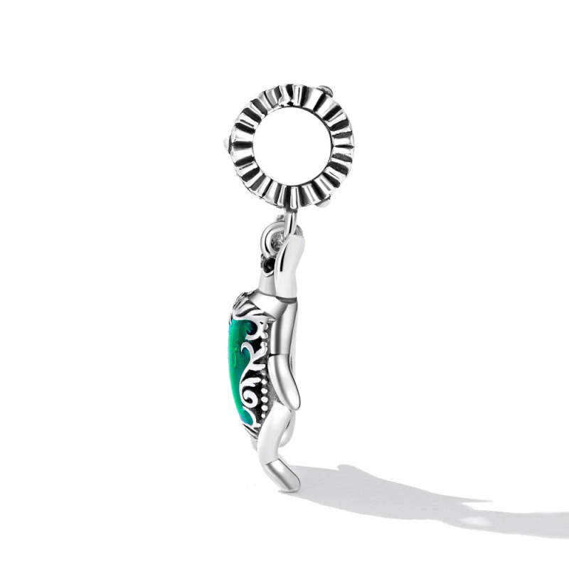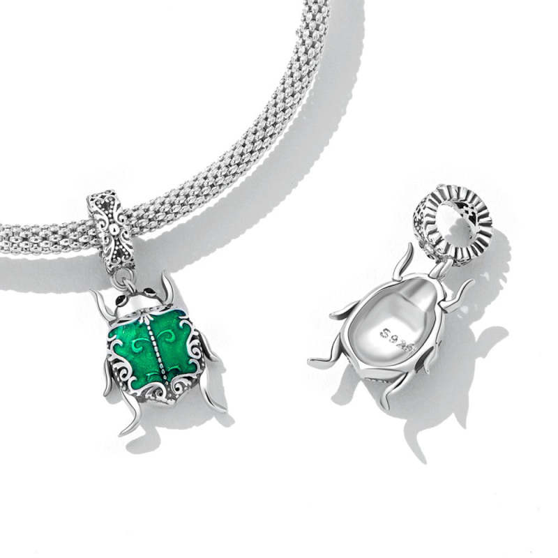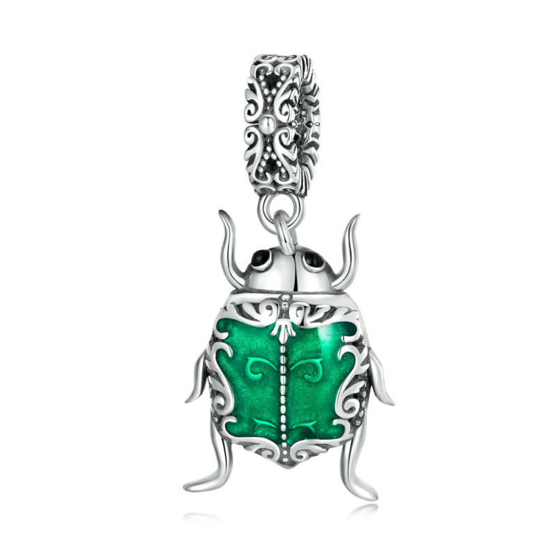Green Beetle Elf Dangle Charm Silver