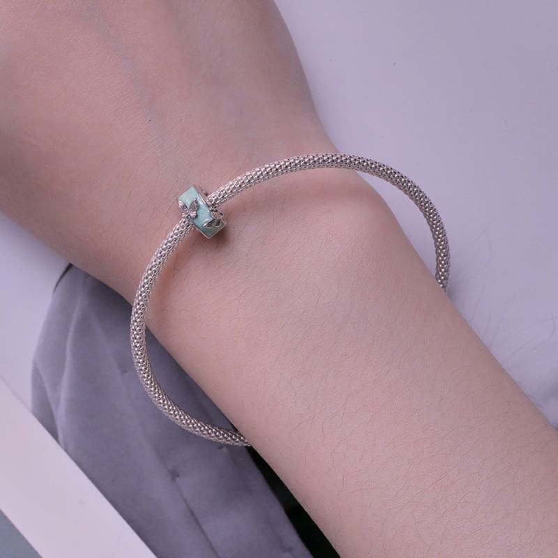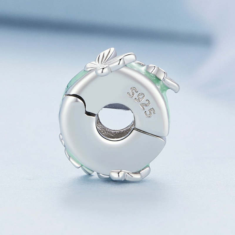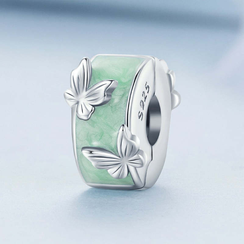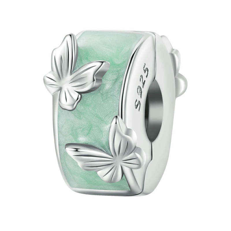 Green Butterflies Stopper Charm Spacer Charm Silver
