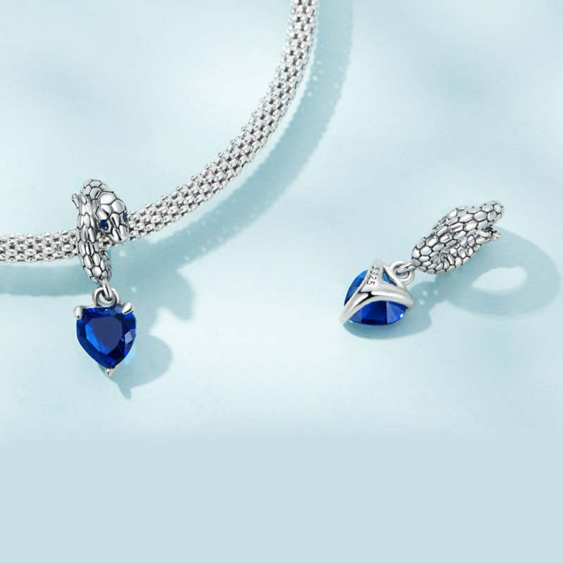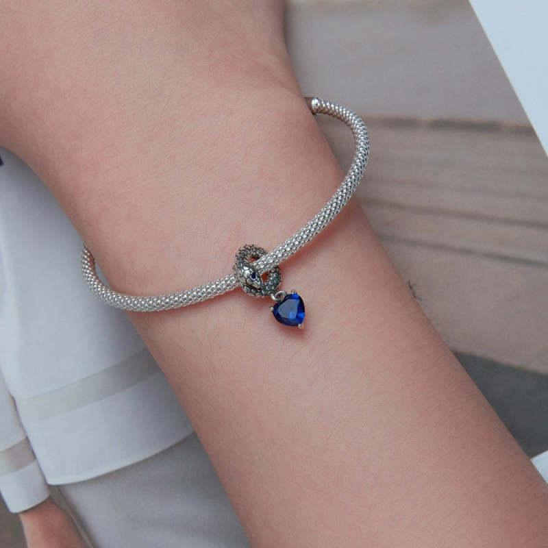 Guardian Snake Blue Pendant Charm Silver