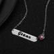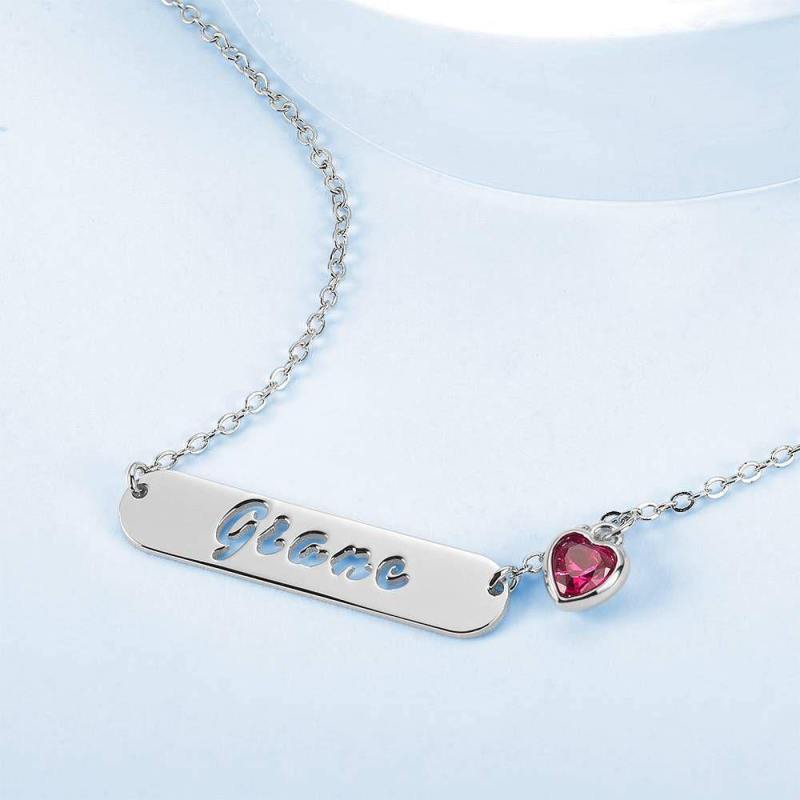 Hollow Carved Bar Name Necklace with Custom Birthstone, Unique Gift Platinum Plated - Silver