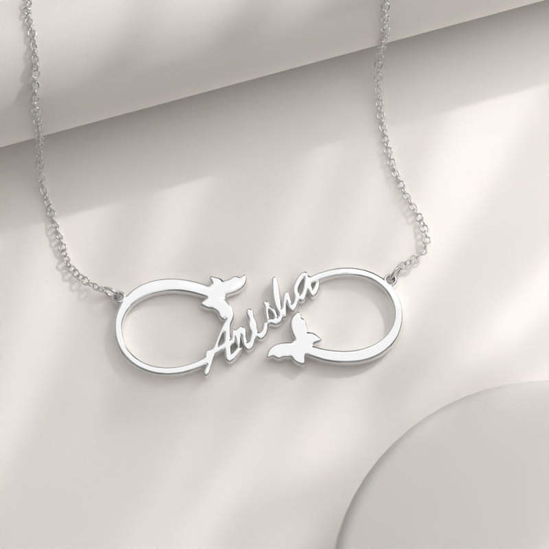 Infinity Name Necklace, Custom Butterfly Name Necklace Gift