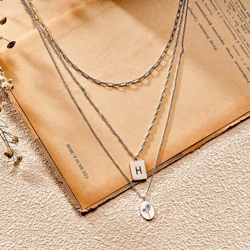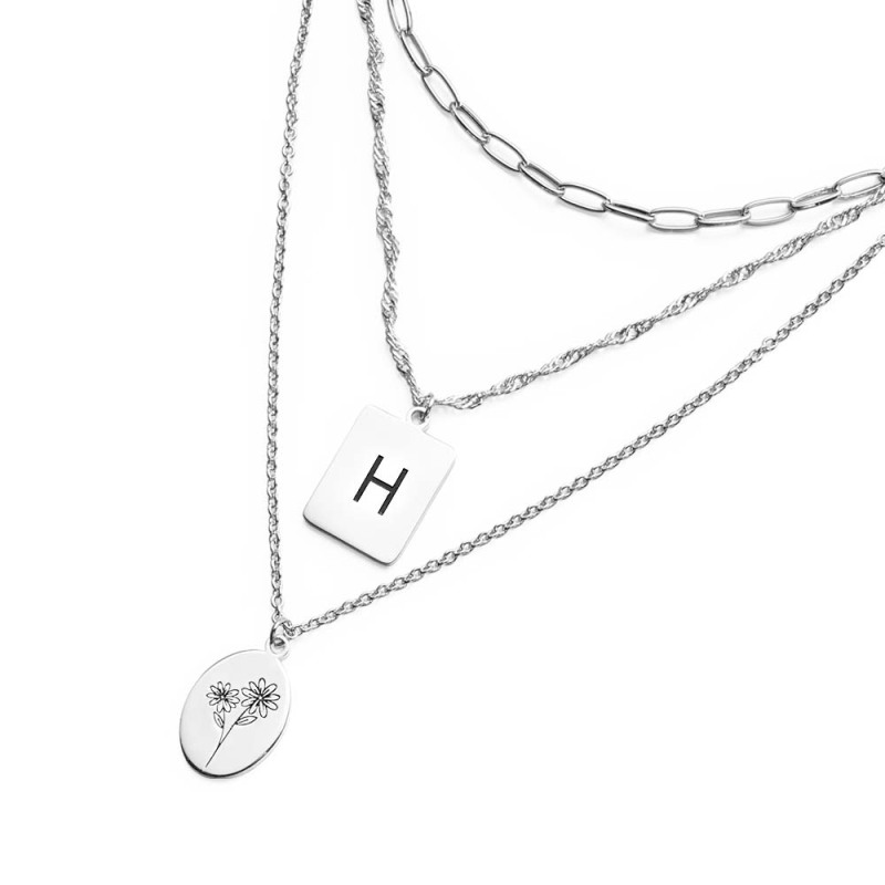 Layered Custom Letter Flower Necklace Personalized Necklace Anniversary Gifts for Women