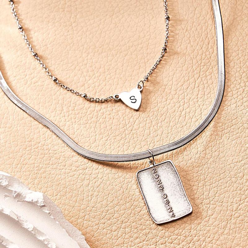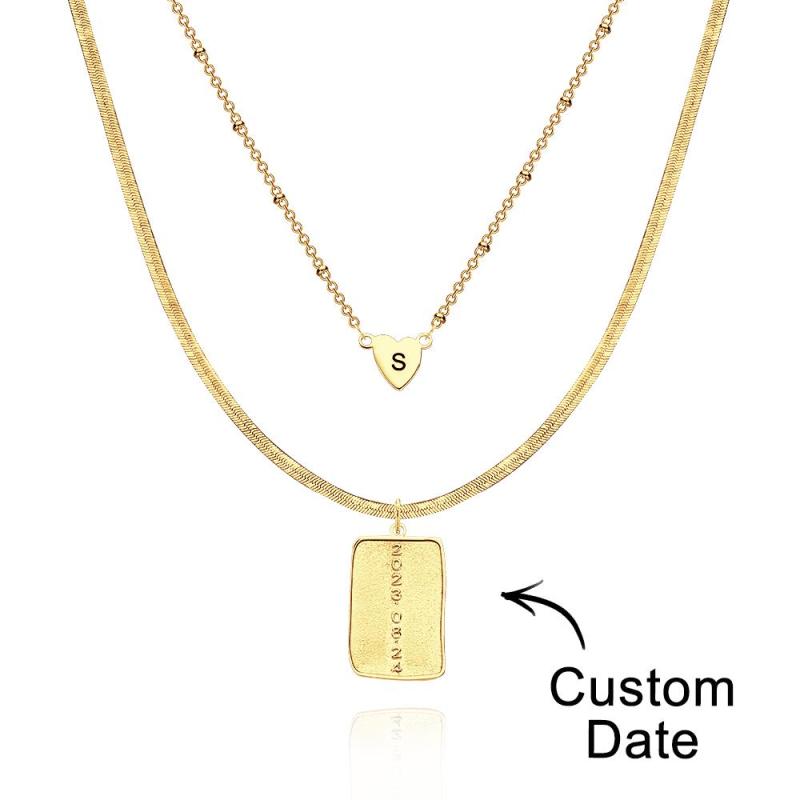 Layered Custom Letter Necklace Personalized Date Necklace Anniversary Gifts for Women