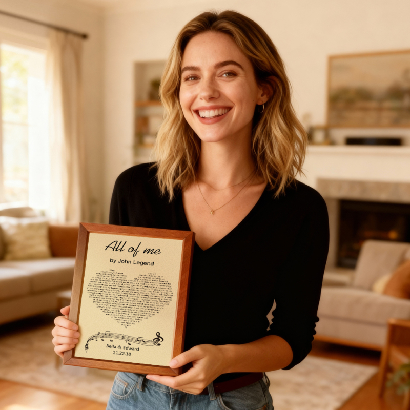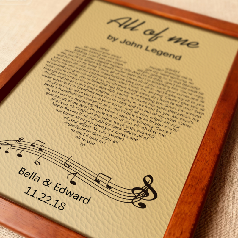 Custom Leather Lyrics Frame Decorations Engraved Heart Lyrics Desktop Ornaments Wedding Anniversary Gift